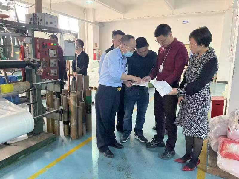 當(dāng)日下午,檢查組來到位于金環(huán)宇科技園的深圳市深源包裝材料有限公司,深圳市興合昇包裝材料有限公司以及深圳市瑞祥包裝制品有限公司,在公司負(fù)責(zé)人的帶領(lǐng)下,檢查人員詳細(xì)查看公司車間、半成品倉庫及成品倉庫,詢問公司經(jīng)營狀況。據(jù)公司負(fù)責(zé)人介紹,開年后,訂單逐漸增多,信心更足了。檢查人員發(fā)現(xiàn),3家印刷企業(yè)主要承接外加工,生產(chǎn)紙箱、產(chǎn)品標(biāo)識(shí)或不干膠膠紙等,檢查人員向公司負(fù)責(zé)人宣傳相關(guān)法律法規(guī)及印刷行業(yè)規(guī)范標(biāo)準(zhǔn),要求企業(yè)嚴(yán)格落實(shí)《印刷行業(yè)五項(xiàng)管理制度》,包括承印驗(yàn)證、承印登記、印刷品保管、印刷品交付、印刷活動(dòng)殘次品銷毀等制度,做好五項(xiàng)管理制度臺(tái)賬,禁止承接和印刷含有反動(dòng)、淫穢、迷信內(nèi)容和國家明令禁止的印刷品及其他內(nèi)容的印刷品。要加強(qiáng)安全生產(chǎn),及時(shí)發(fā)現(xiàn)并消除各類安全隱患,確保員工生命安全和身體健康。